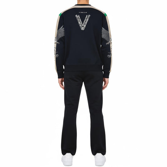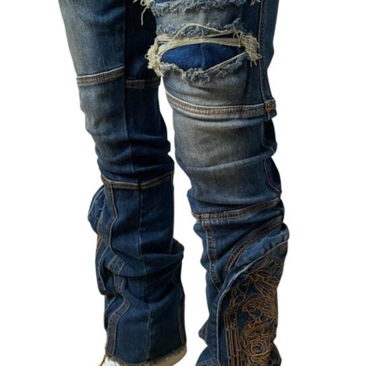 Denim jacket w/ suede cut & sew and pearl + gem stone details