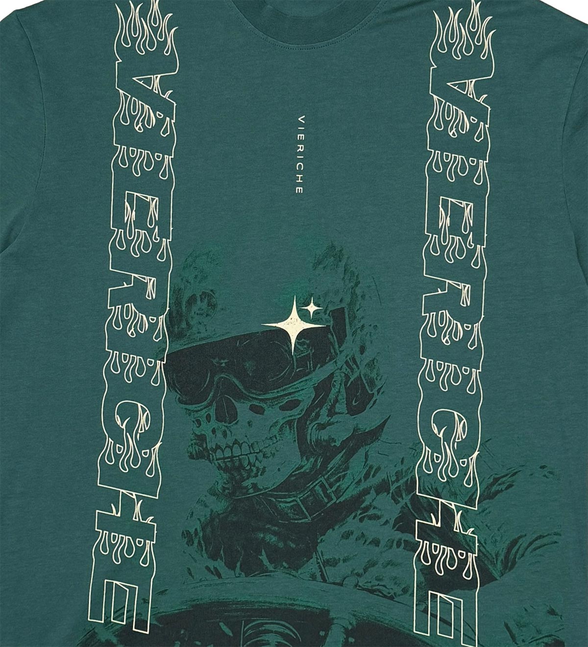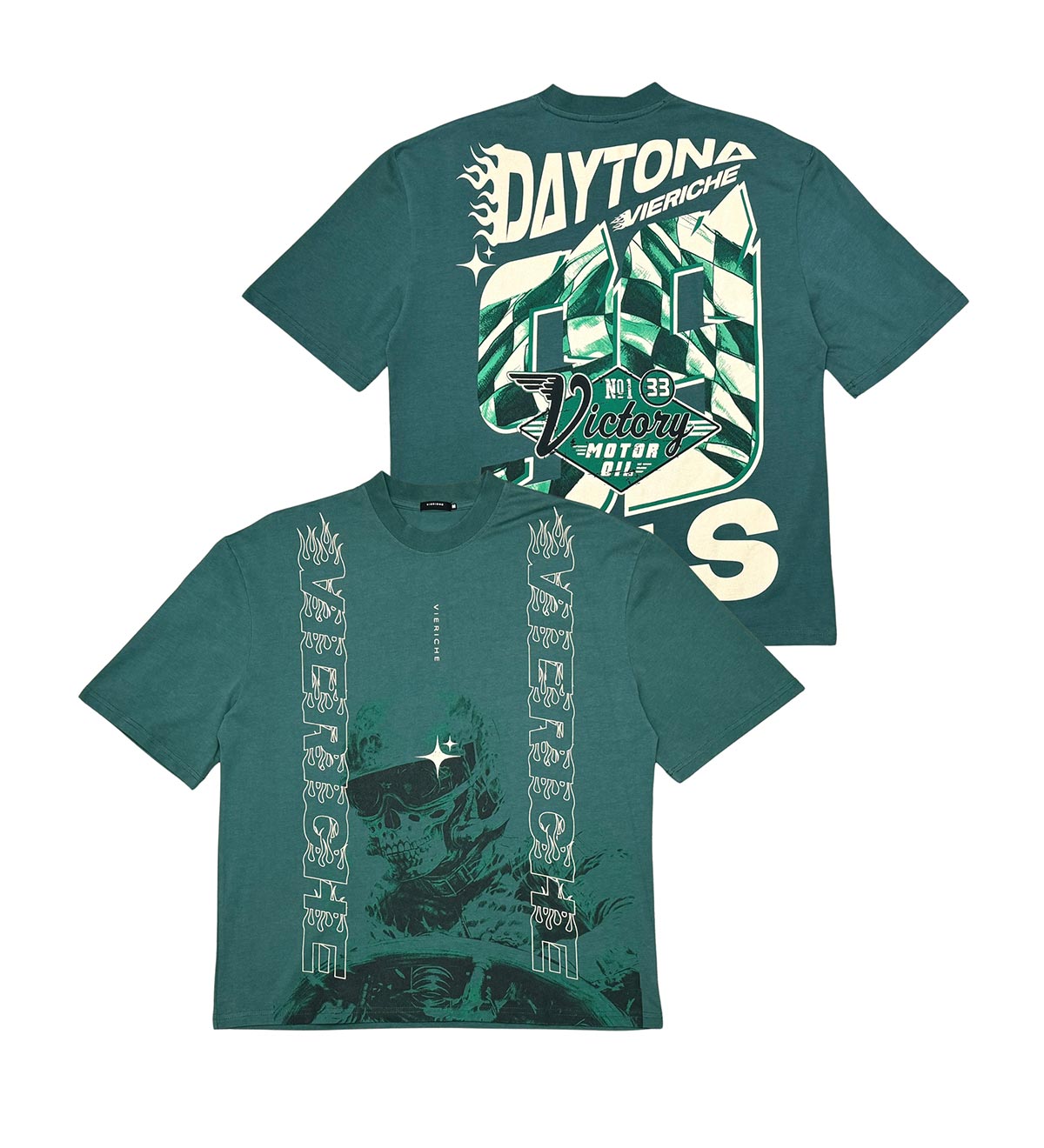 100% fine knit cotton tee shirt with acid wash effect and printed graphic on front and back.