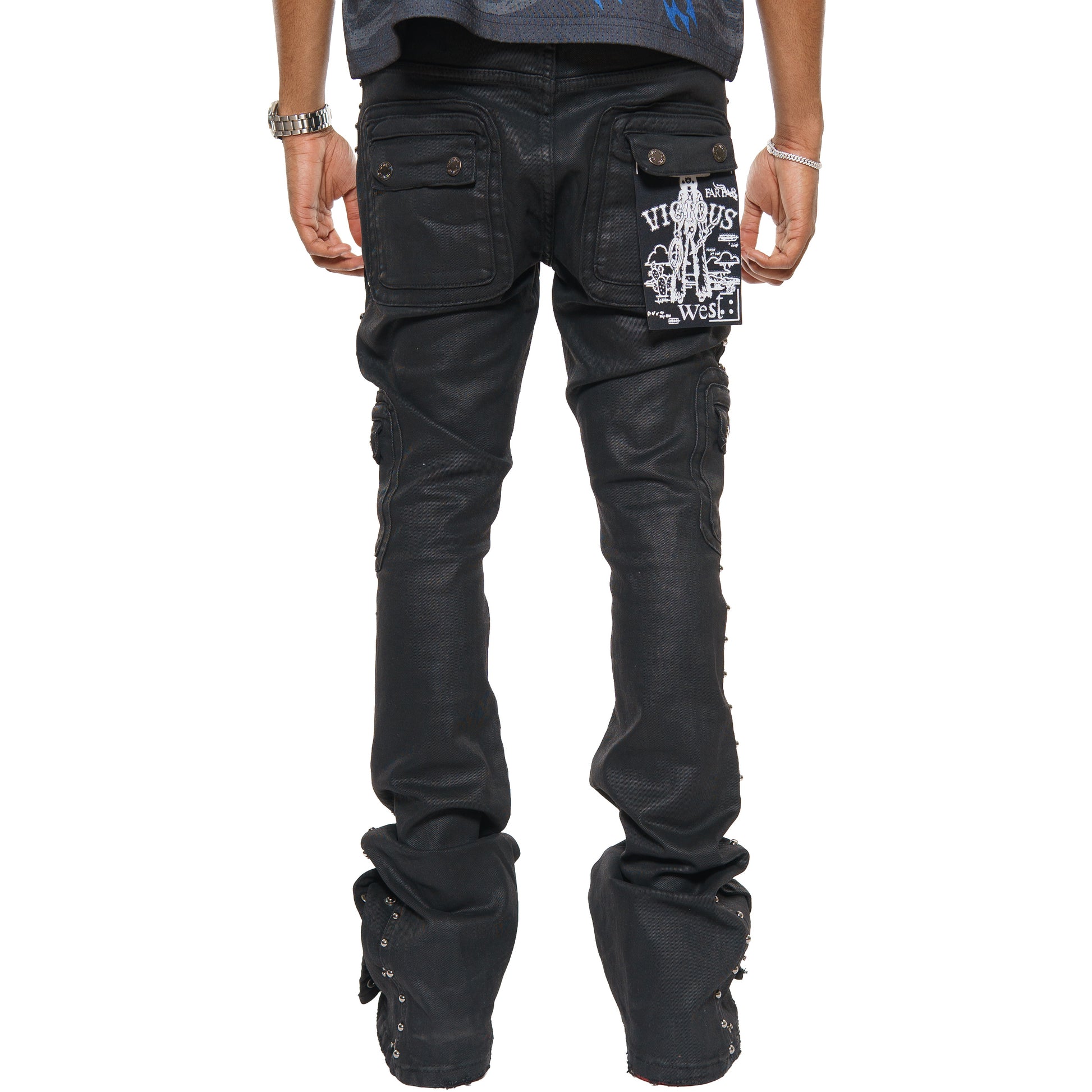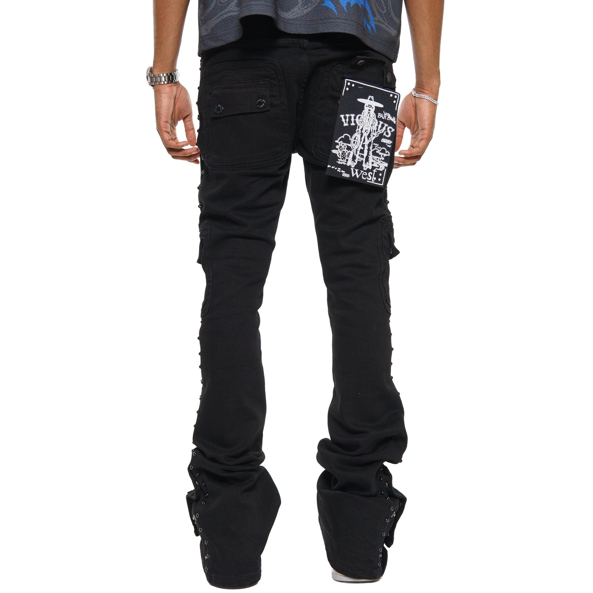 Studded warrior cargo flare fit denim pant
