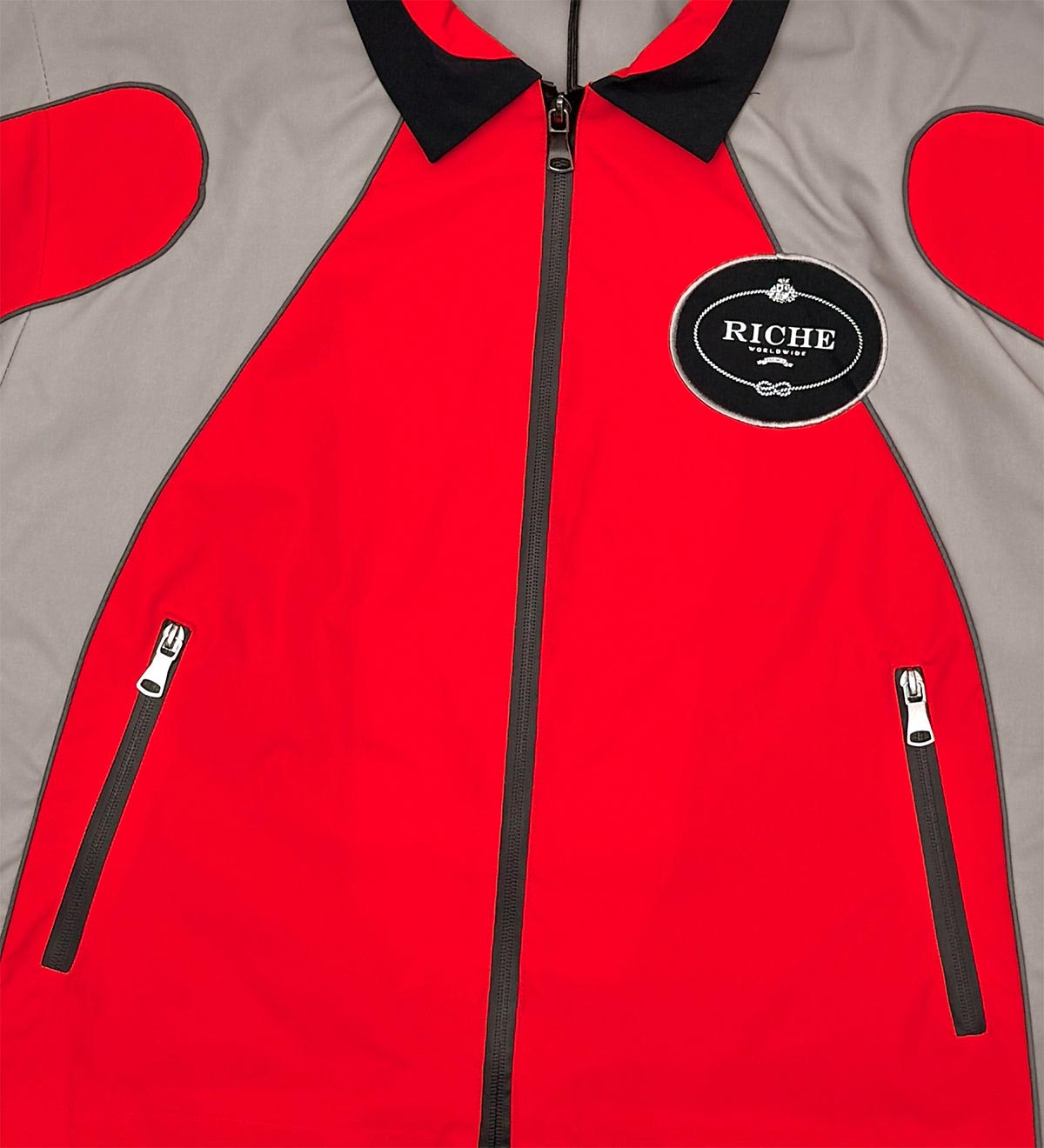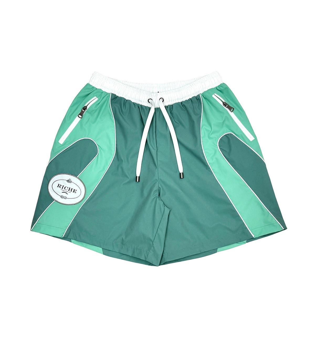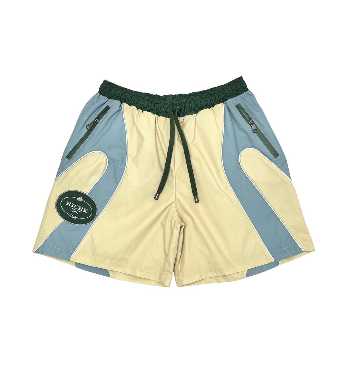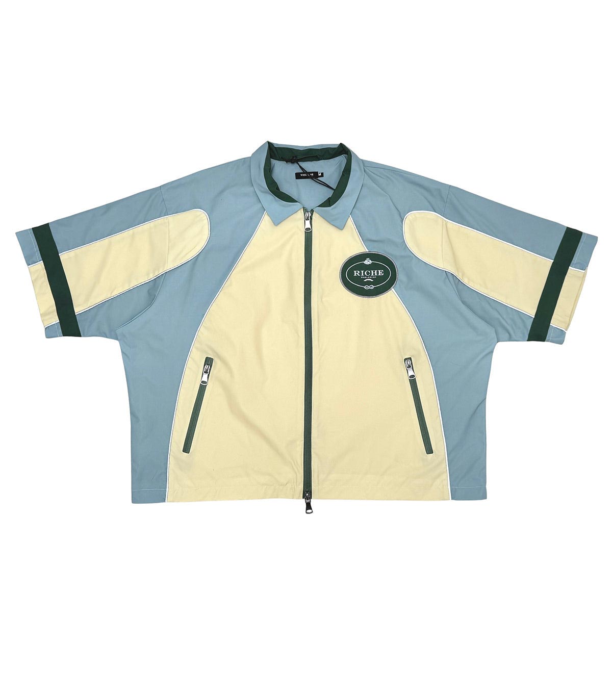 100% Polynylon short sleeve zipup jacket with contrast paneling detail, reflective piping detail, logo patch on front chest and back, and zippered pockets.100% Polynylon shorts with contrast paneling detail, contrast piping detail, logo patch on front leg, and zippered pockets.