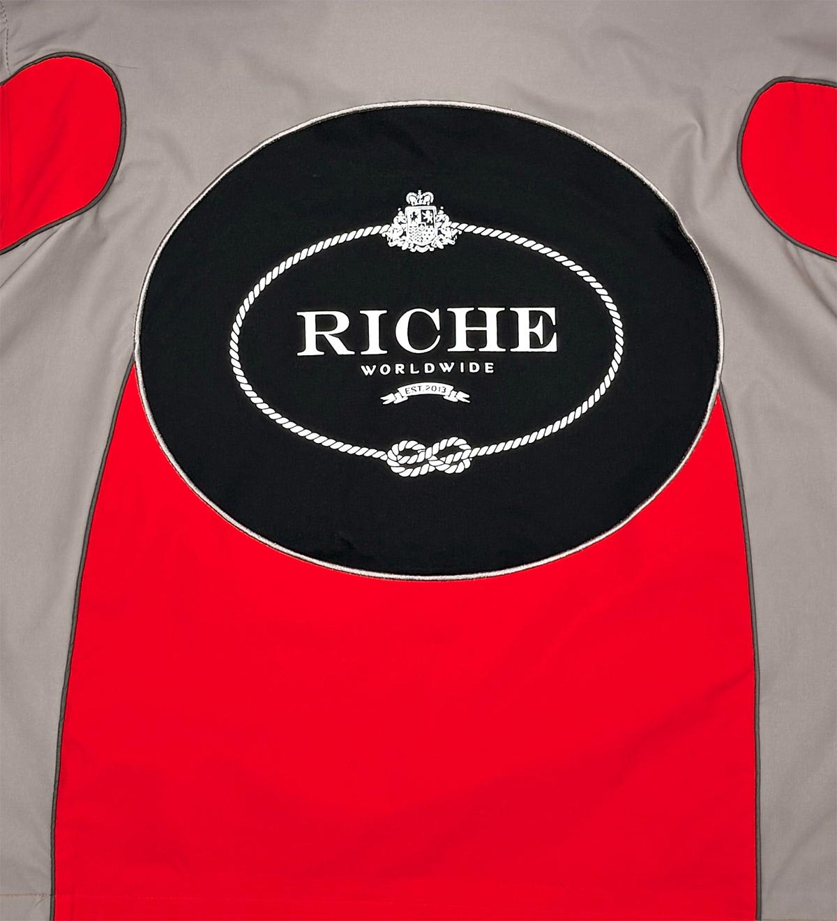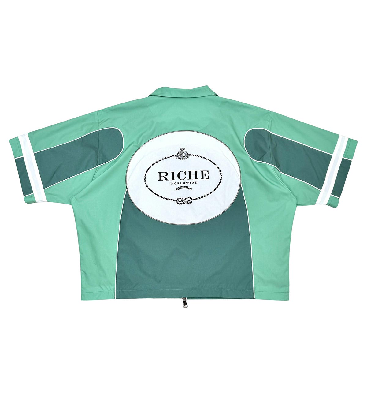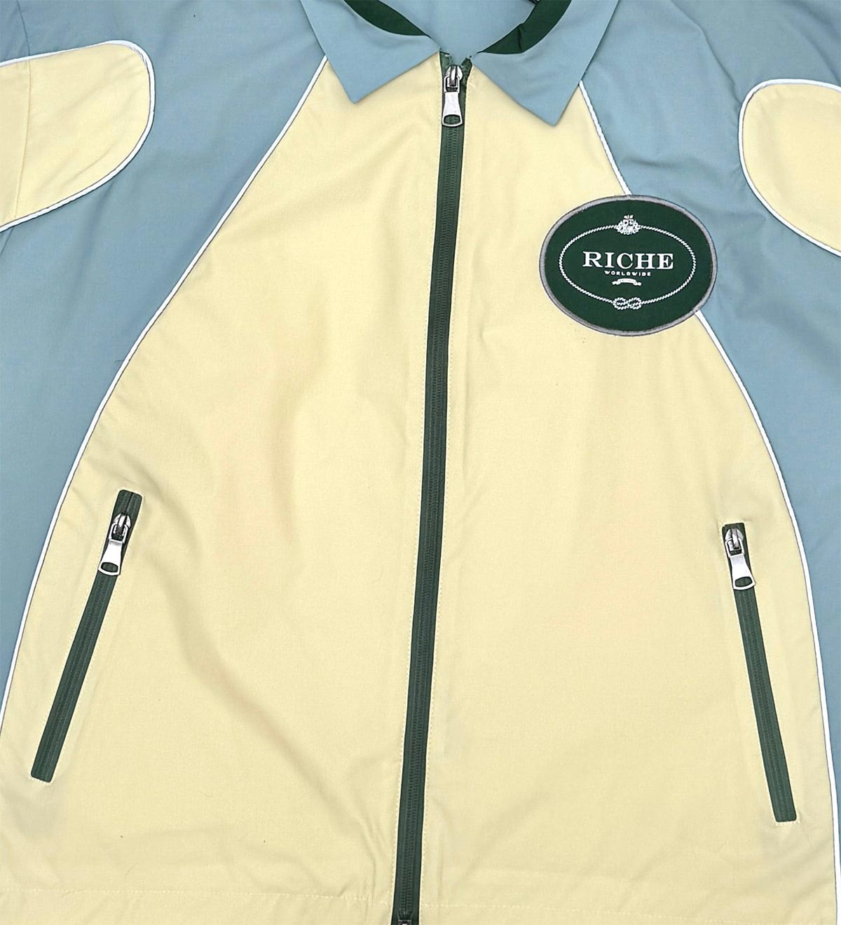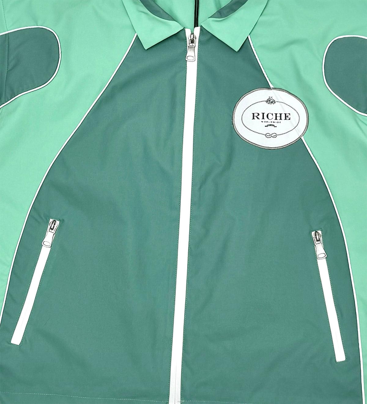 100% Polynylon short sleeve zipup jacket with contrast paneling detail, reflective piping detail, logo patch on front chest and back, and zippered pockets.100% Polynylon shorts with contrast paneling detail, contrast piping detail, logo patch on front leg, and zippered pockets.