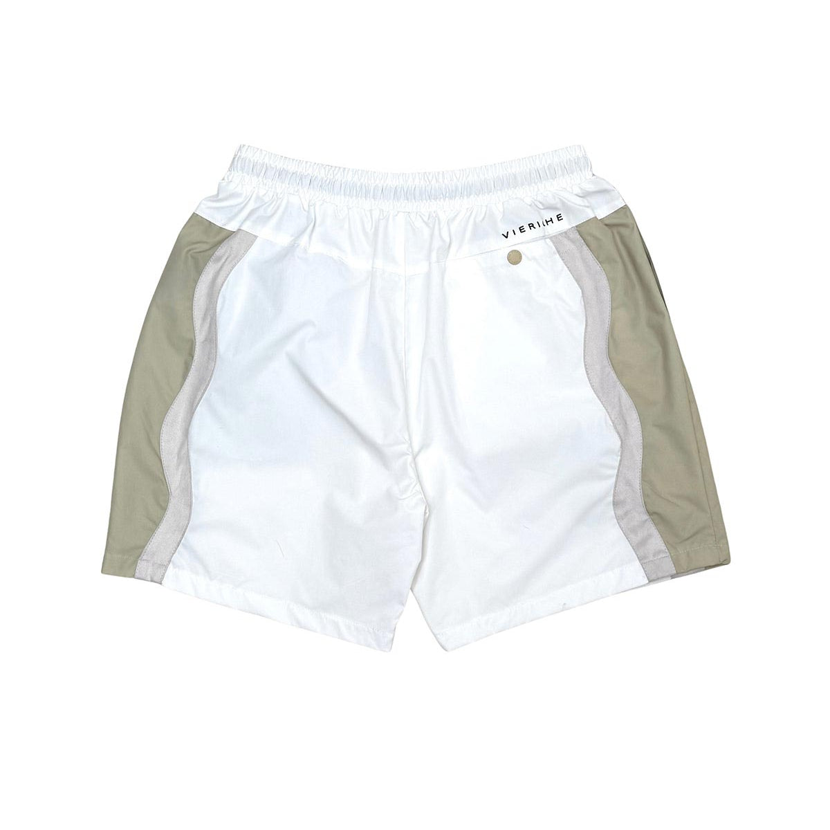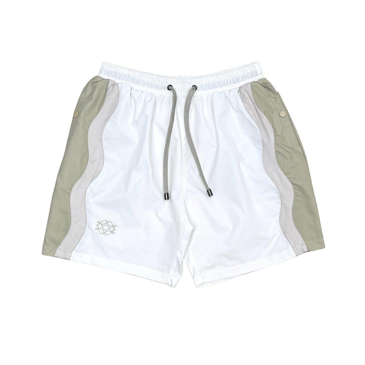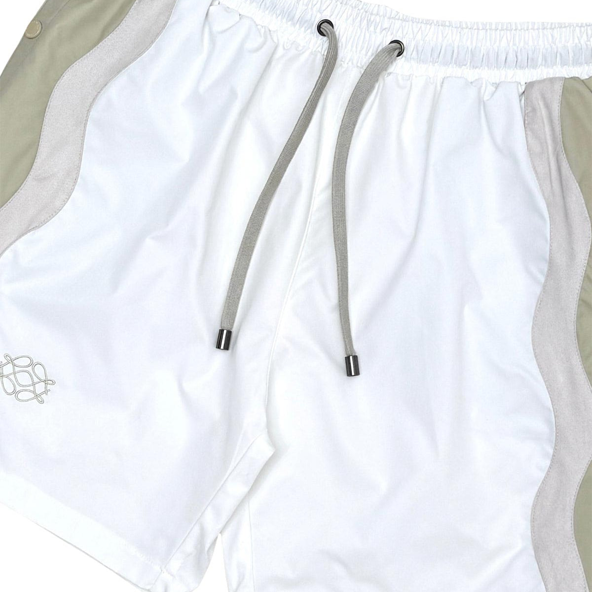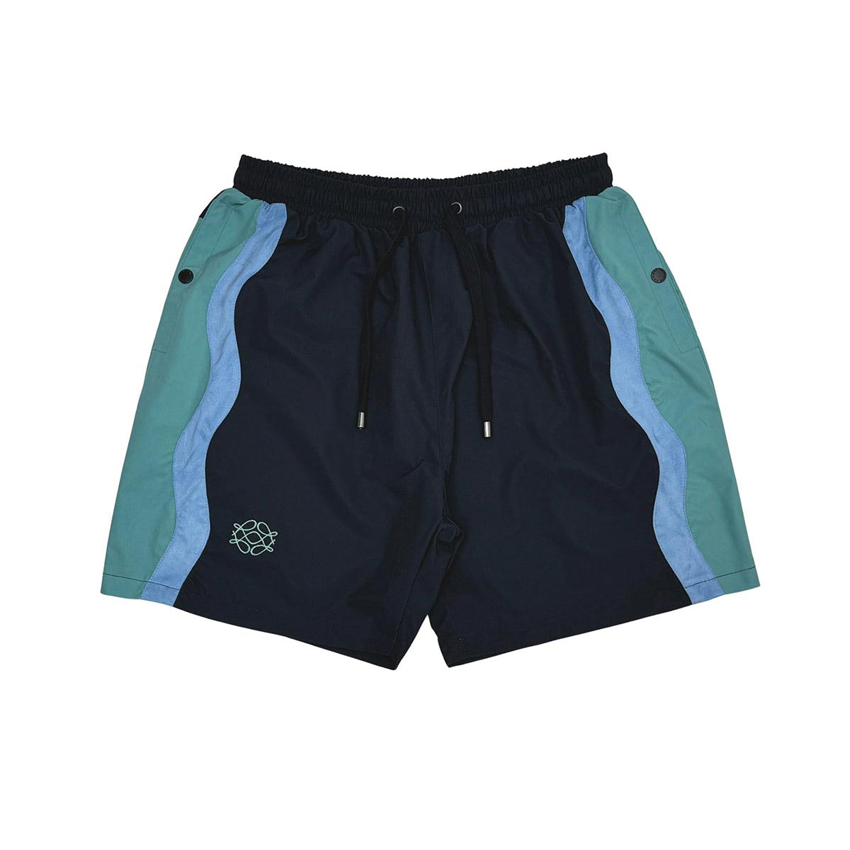 100% Poly-Poplin button up shirt with contrast paneling detail, and Logo print on chest, and stones applique on back. 100% Poly-Poplin shorts with contrast paneling detail, and Logo print on thigh.