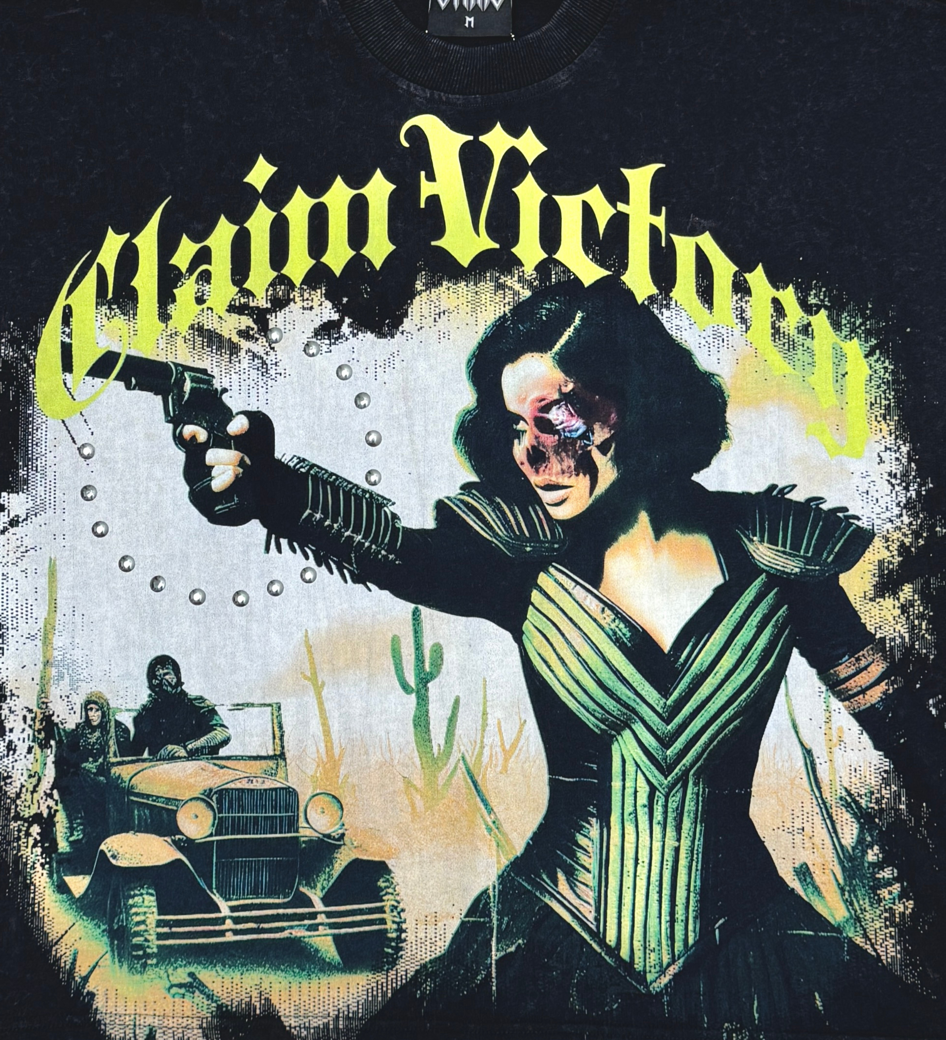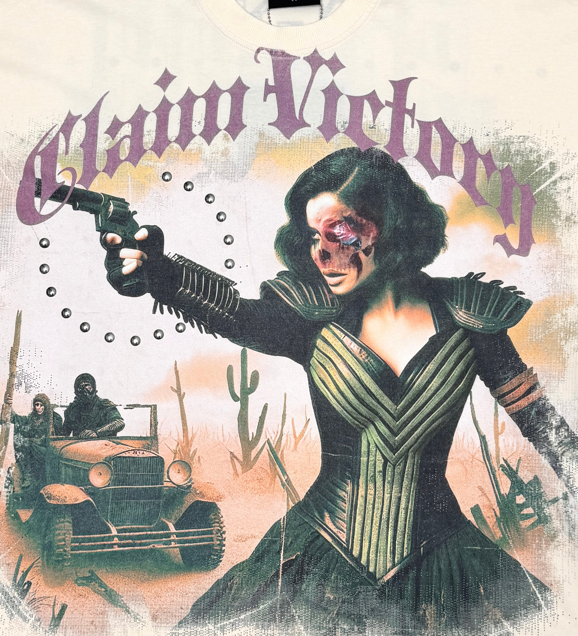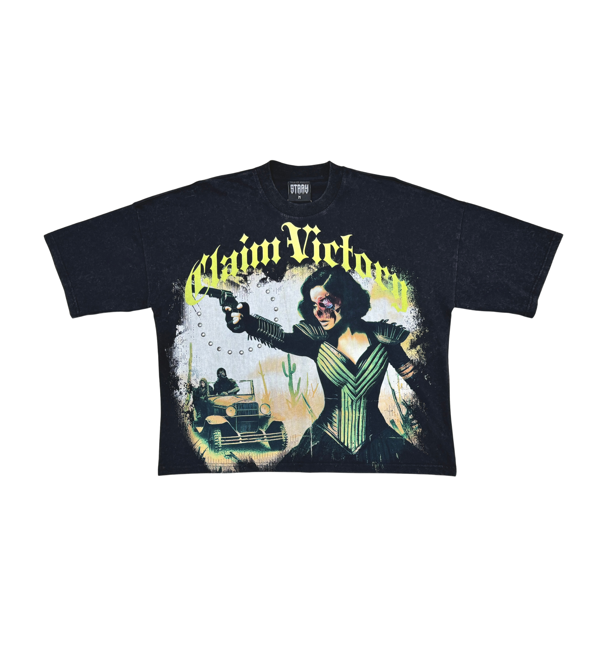 Pre-washed 300 gsm 100% cotton dtg print with rhinestones & studs.