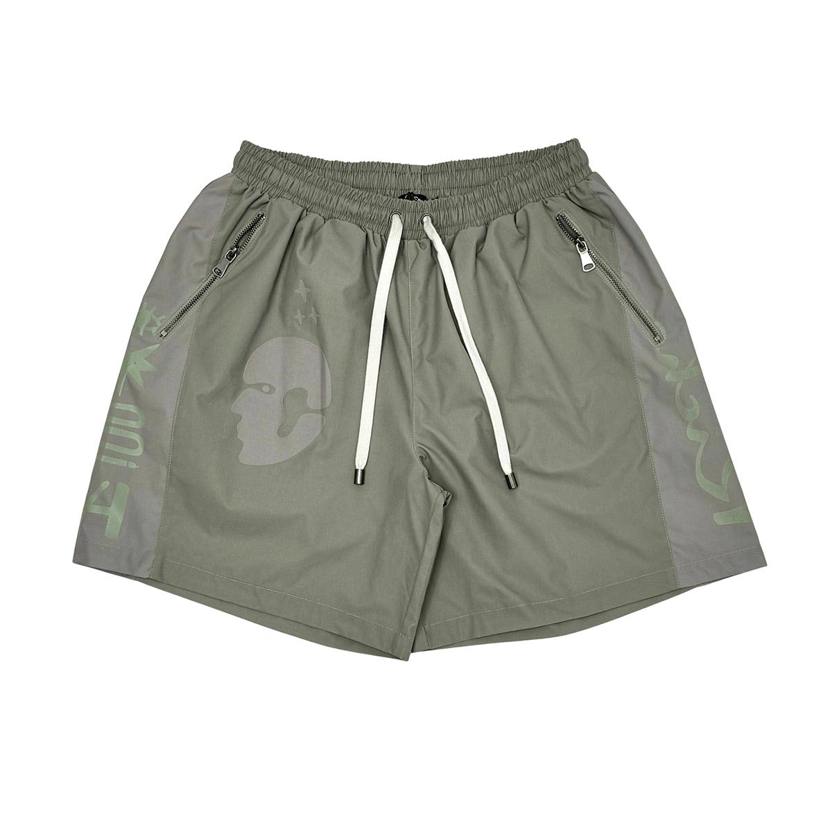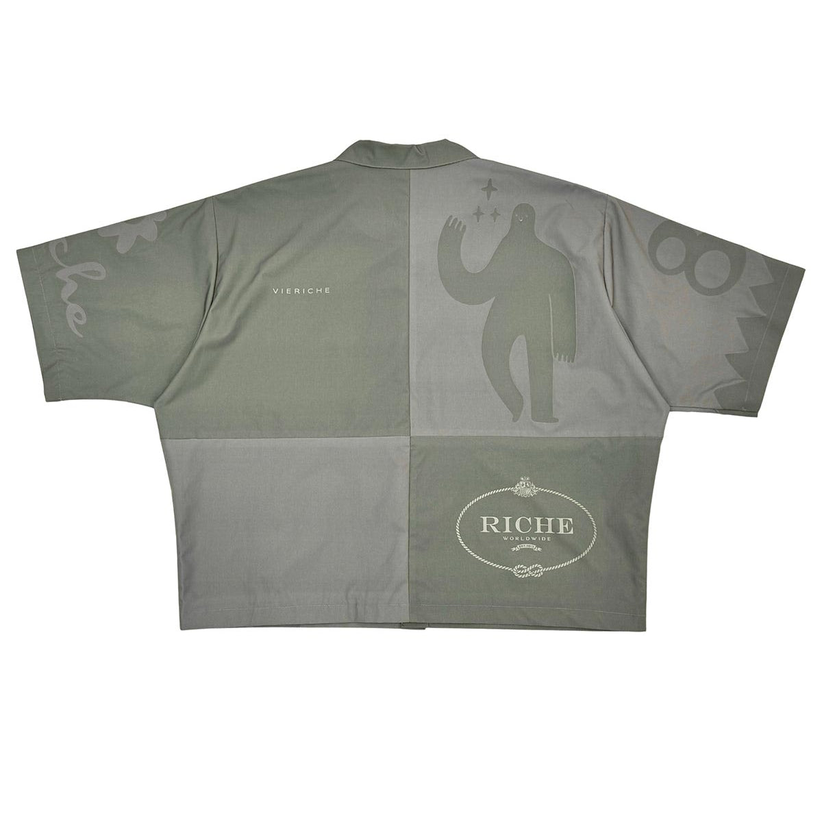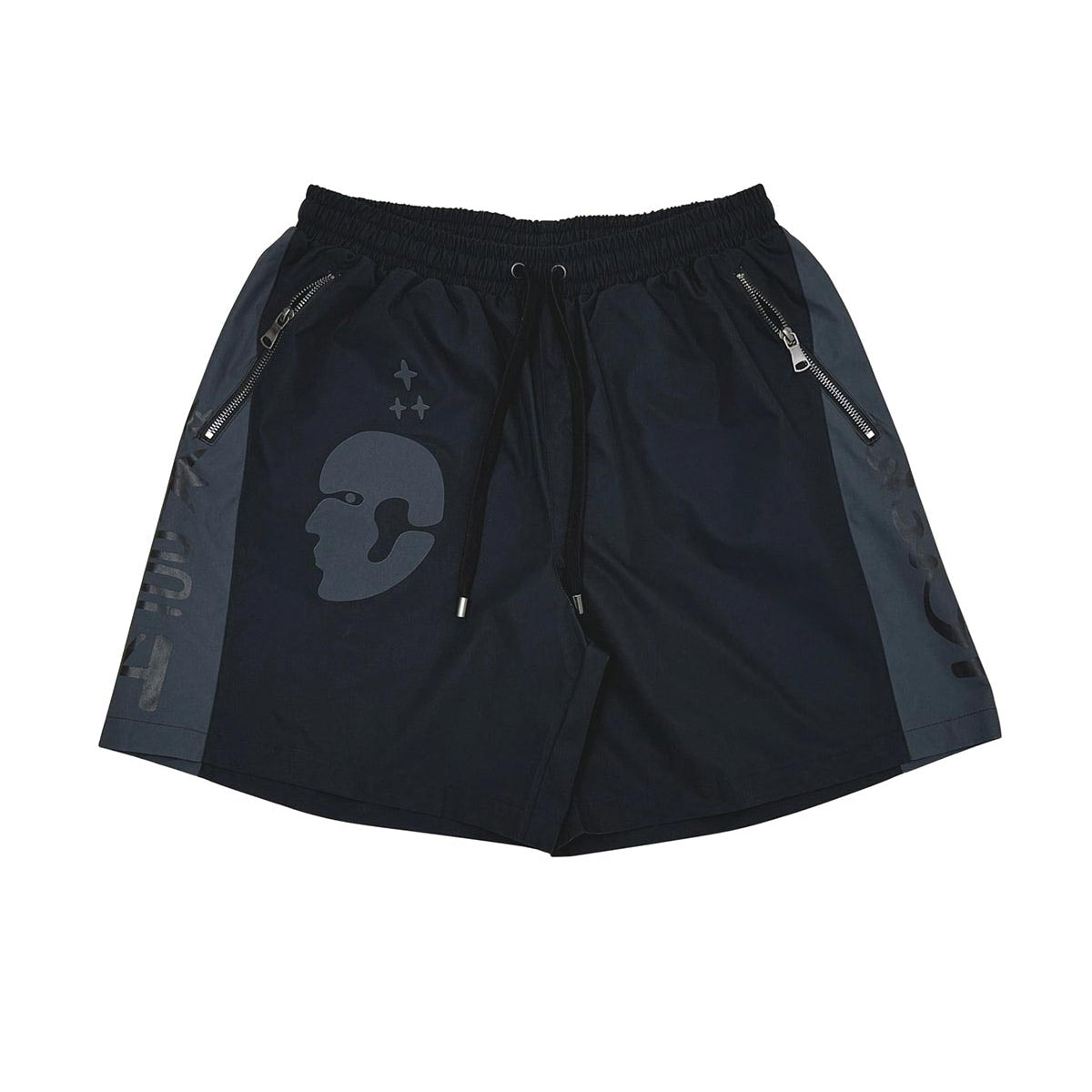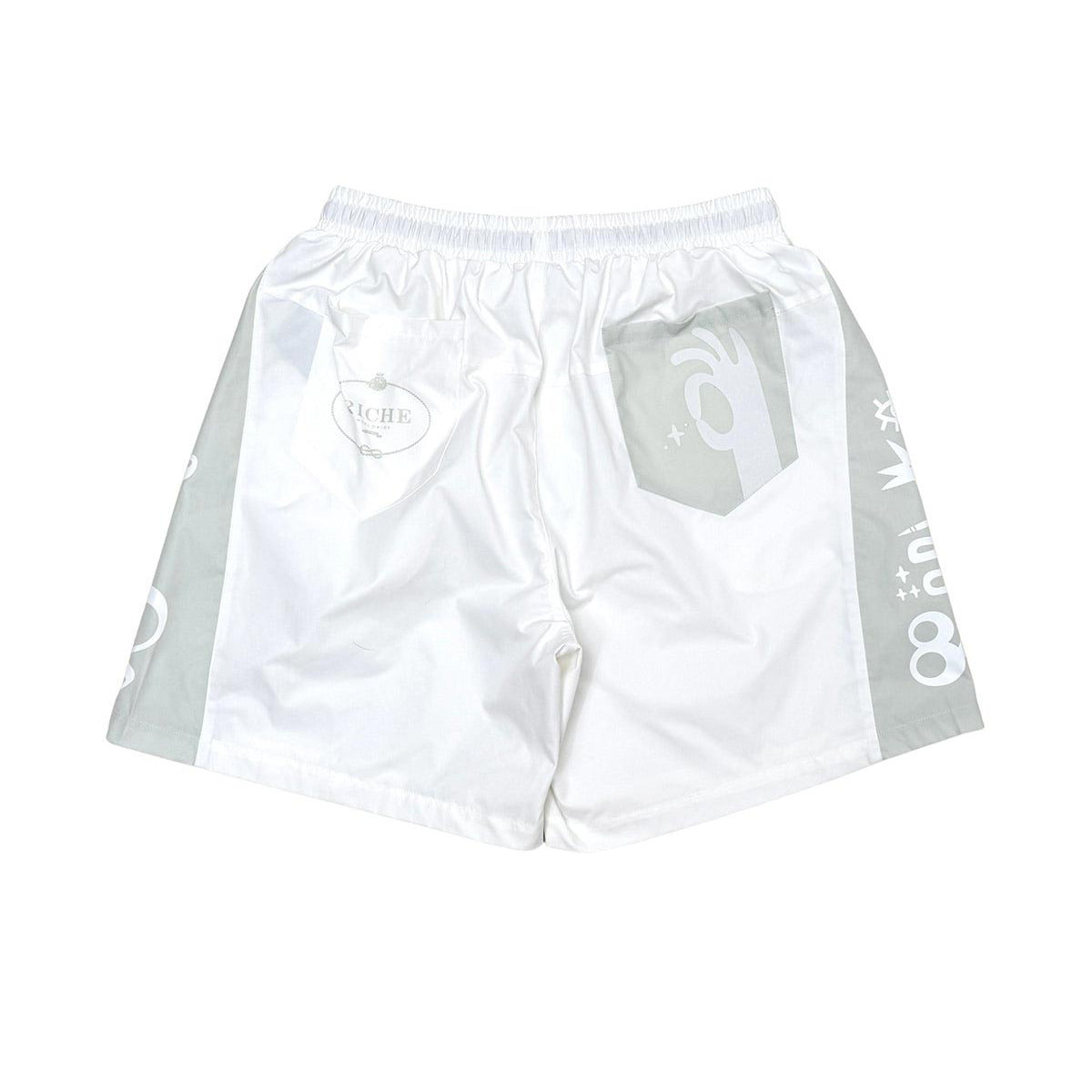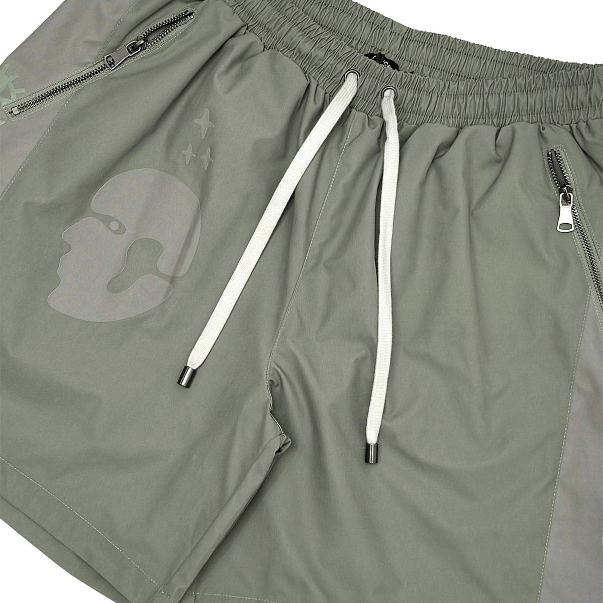 100% Polynylon button up shirt with self-fabric applique graphics and snap button closure.100% Polynylon shorts with self-fabric applique graphics, zippered pockets and drawcord at the waistband.