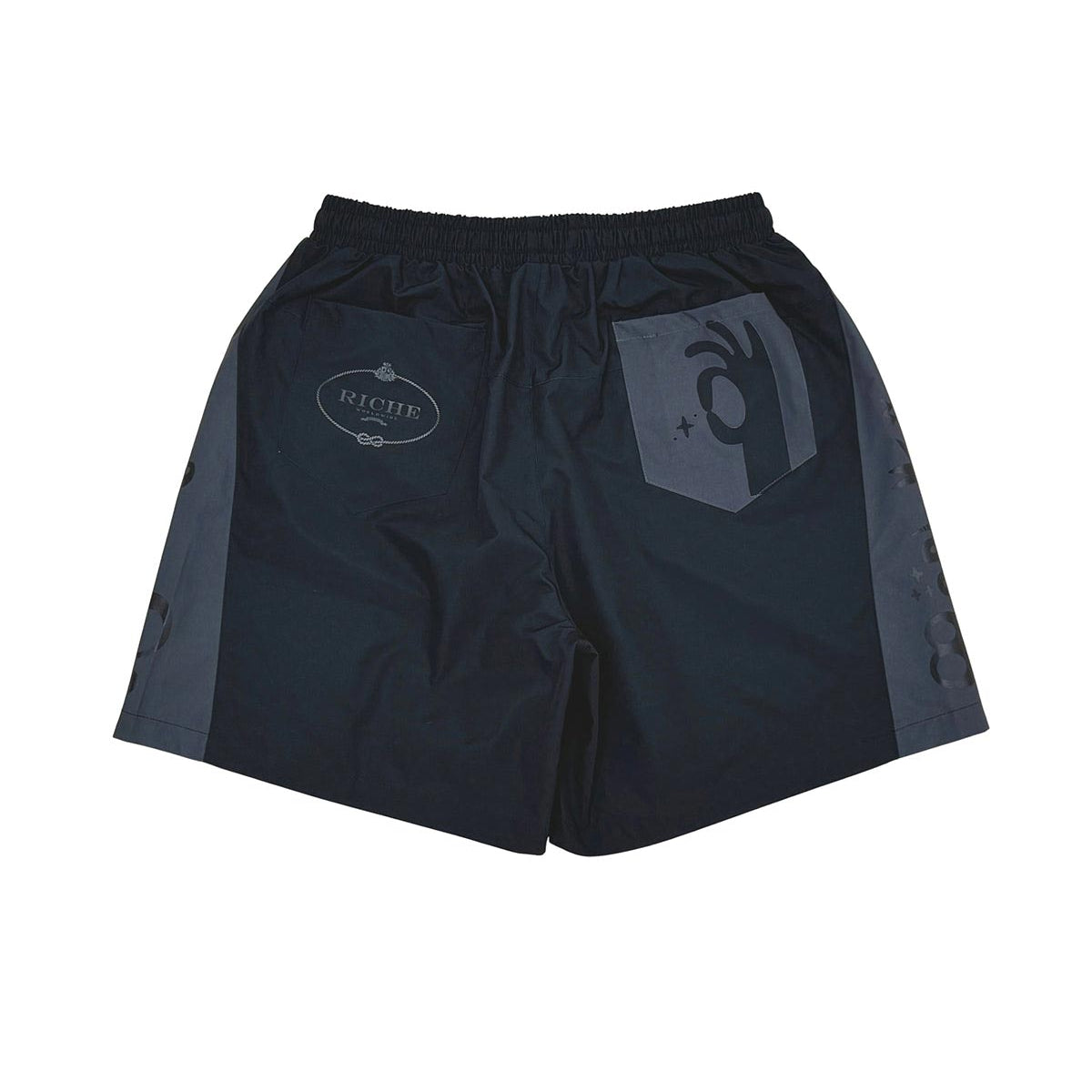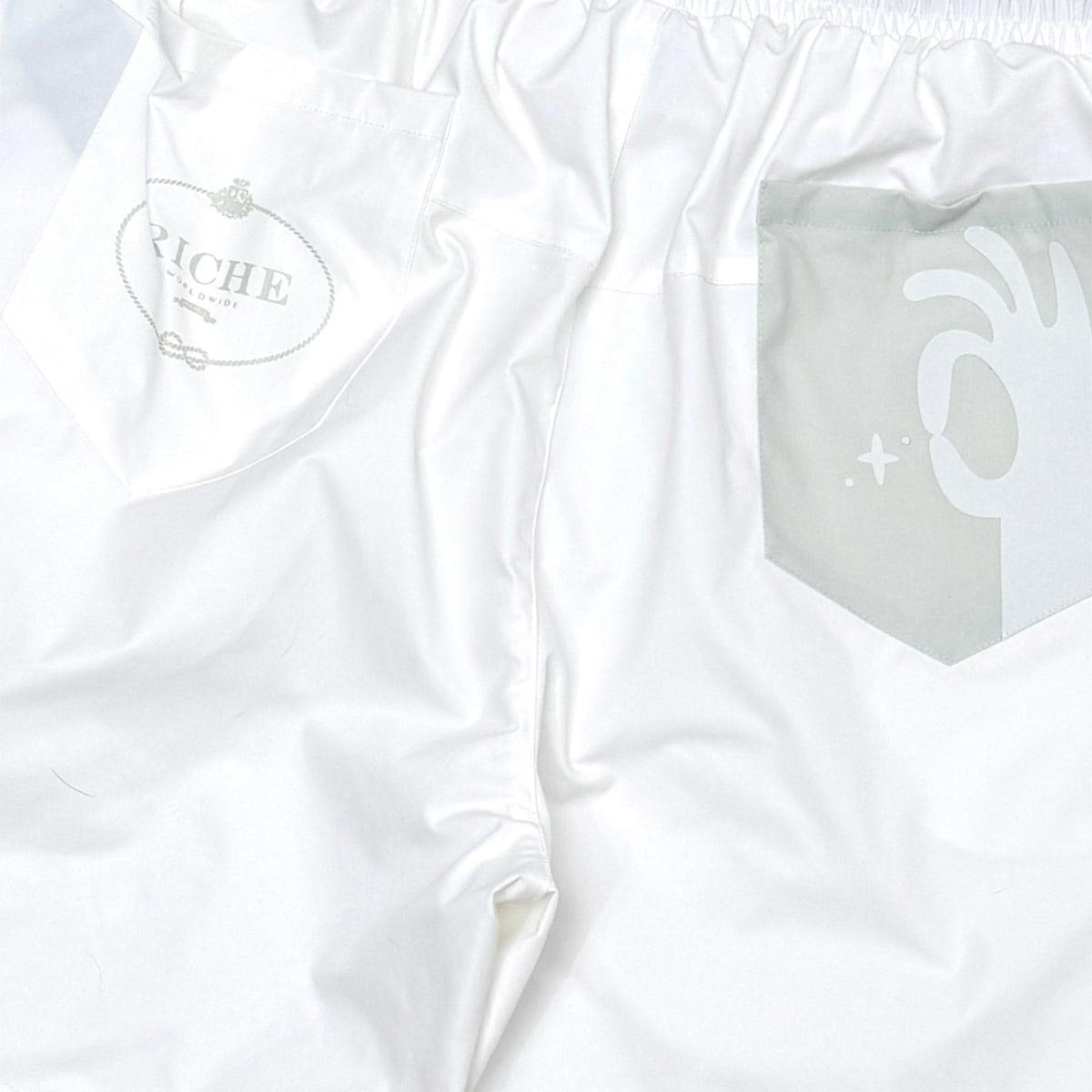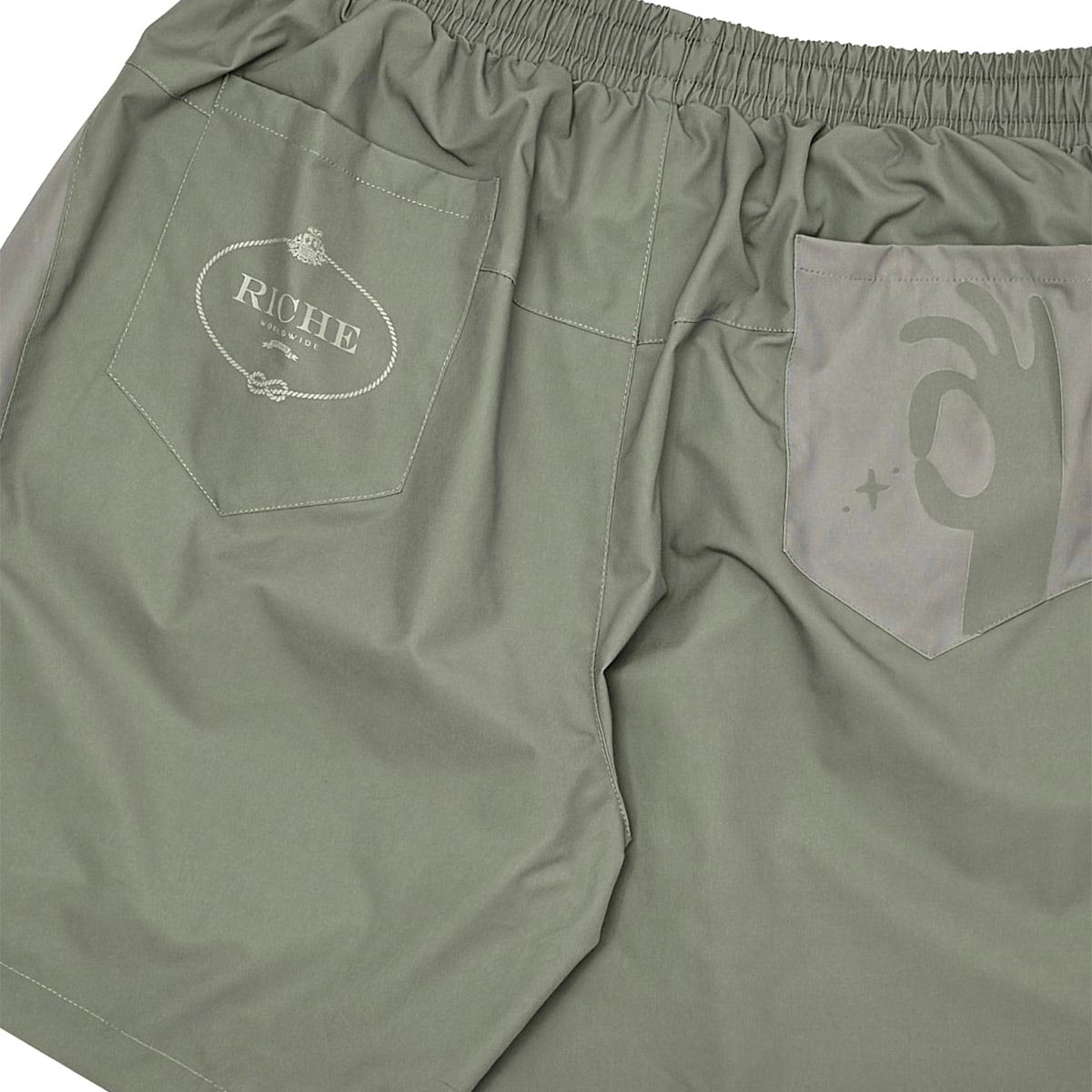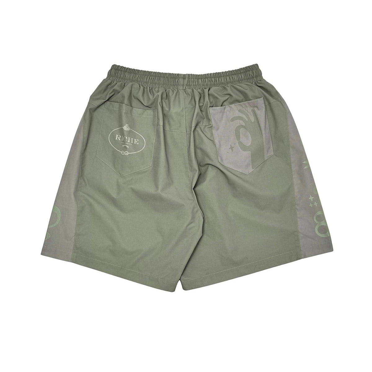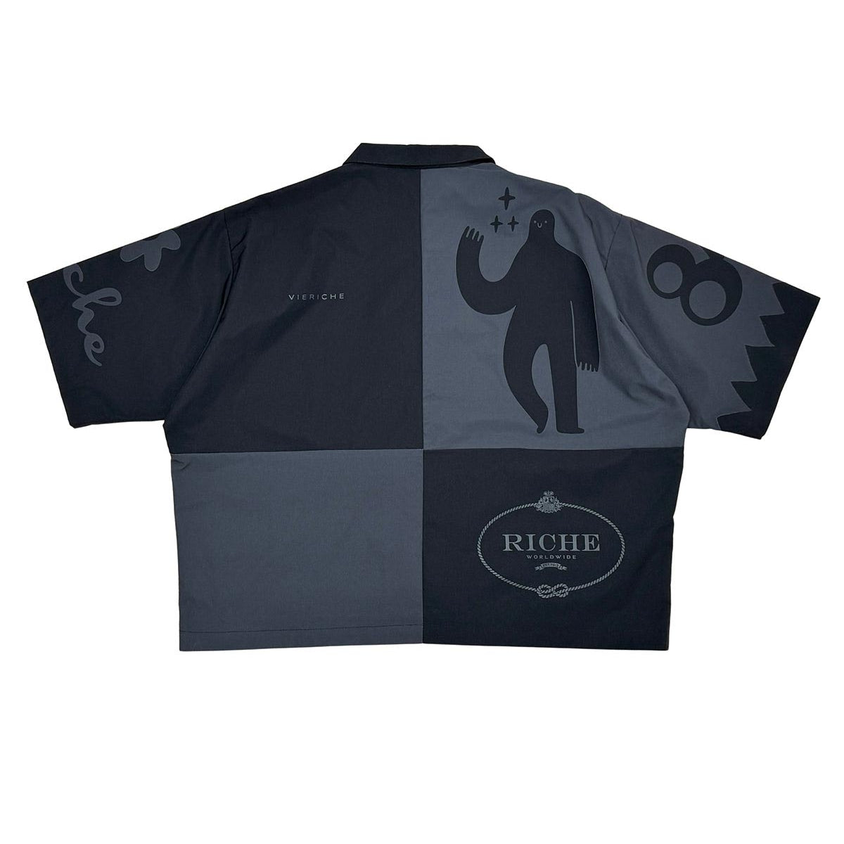 100% Polynylon button up shirt with self-fabric applique graphics and snap button closure.100% Polynylon shorts with self-fabric applique graphics, zippered pockets and drawcord at the waistband.