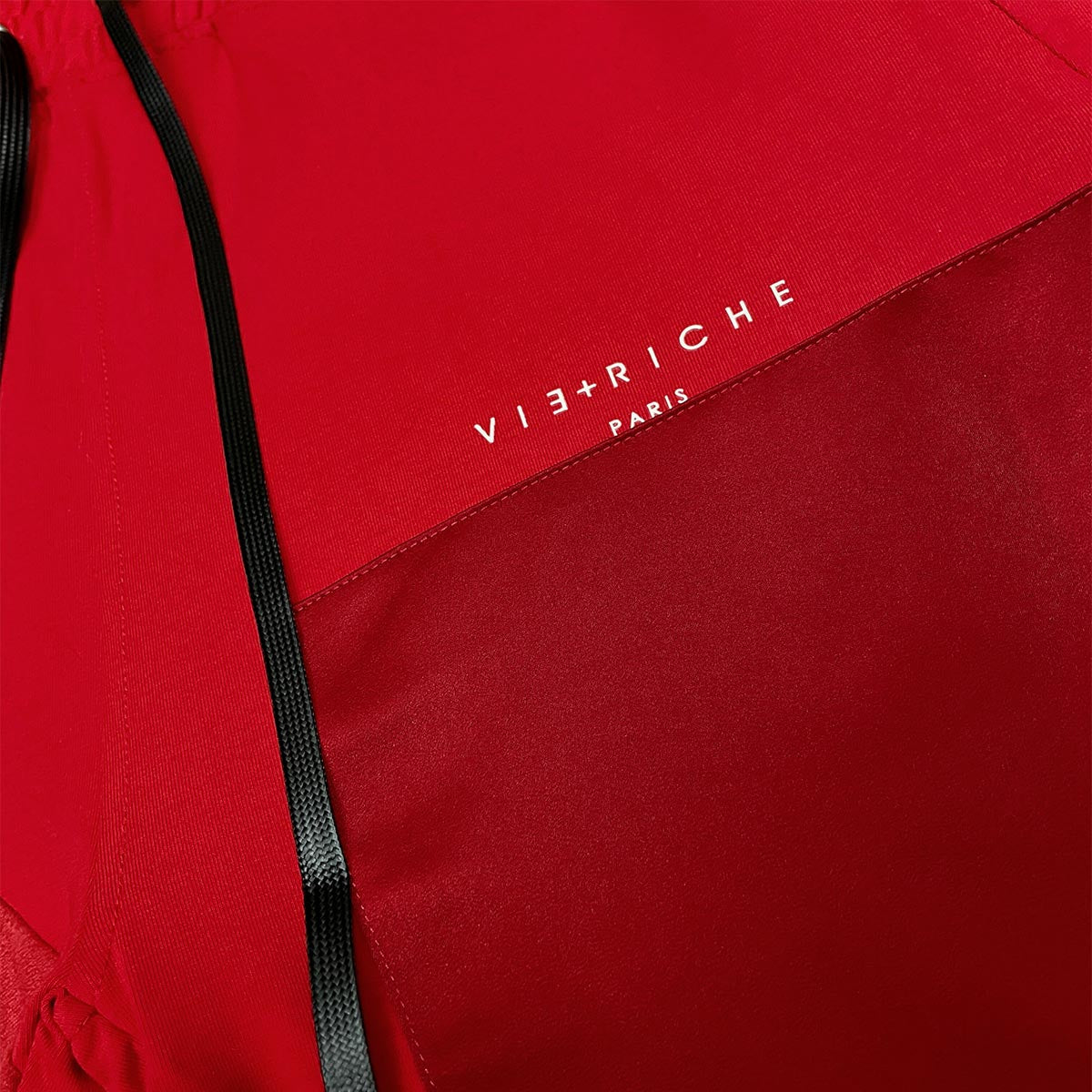 100% fine knit baby french terry shorts paneled with tonal satin and microfiber suede. printed insignia on both legs.